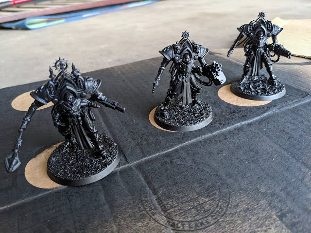 I have been busy priming and airbrushing my Redemptor. One of the challenges of painting clean white is how to keep the layers thin but still achieve coverage. This white was built up from a very pale ocean grey colour. I'll probably add a glaze of darker grey to the bottom of each panel to push the contrast just a little.